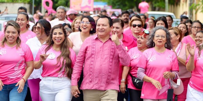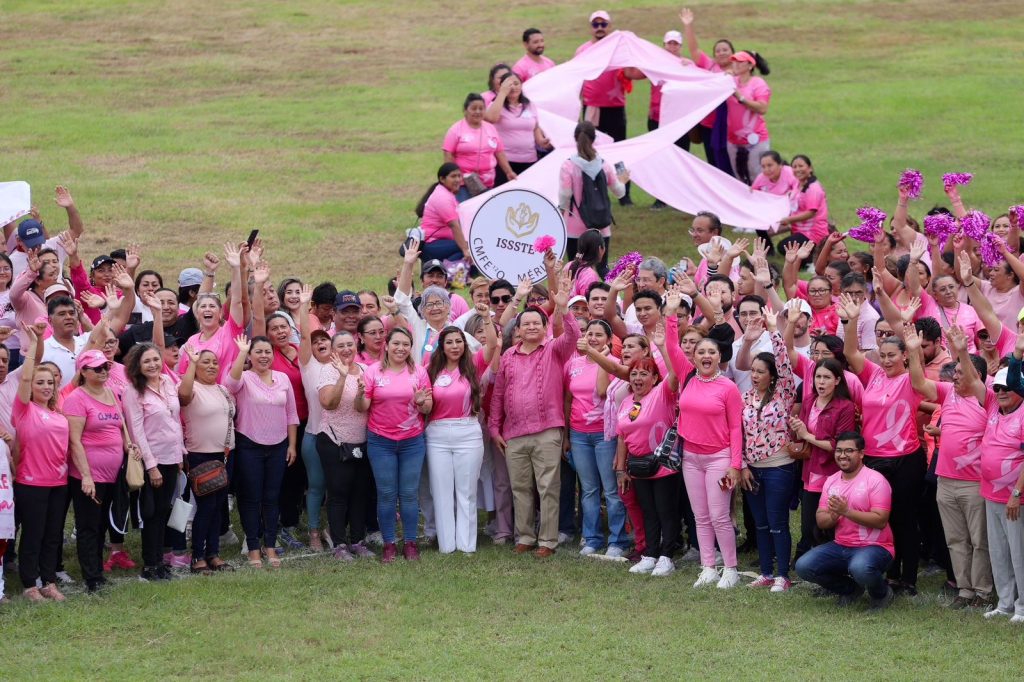 “Estamos aquí no solo para conmemorar, sino para tomar acciones. En esta caminata y en esta feria contra el cáncer de mama queremos brindarles información, herramientas y apoyo a todas las mujeres que lo necesiten. Queremos que sepan las mujeres de Yucatán que no están solas, por eso vamos a trabajar de la mano con el sector salud para que tengamos todos los servicios necesarios en nuestros hospitales para que nuestras mujeres sean atendidas a tiempo”, subrayó Díaz Mena en presencia de la directora general del DIF Yucatán, Shirley Edith Castillo Sánchez.