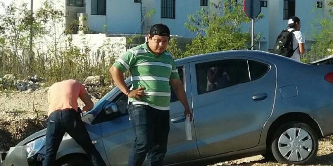 Ahí, la conductora de un auto marca Chevrolet tipo Beat golpeó a un motociclista, cuando ambos querían tomar la carretera para transitar hacia Mérida.
