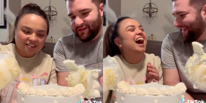 Por medio de un video de TikTok puede verse que la pareja tenía todo listo para saber si sería niño o niña, pero se llevaron una gran sorpresa al darse cuenta que el relleno del pastel no era azul o rosa.
