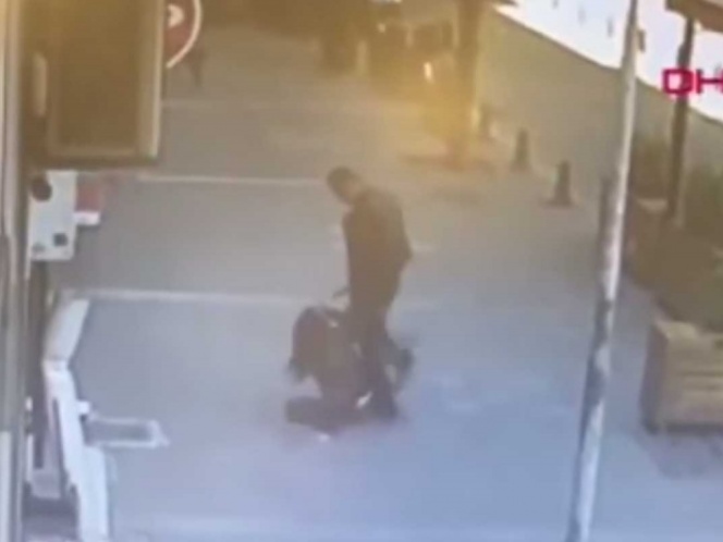 En Estambul, Turquía, un peatón defendió a una mujer que estaba siendo atacada a golpes por otro hombre en la vía pública.