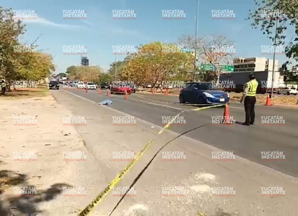Merida, Yuc., 16 abril 2024.- Un hombre hasta el momento no identificado perdió la vida tras ser arrollado por un auto en la zona norte del Periférico de Mérida, en la bajada del puente de la salida de City Center.