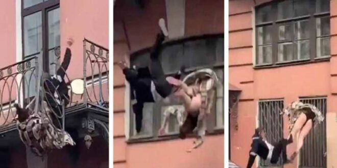 Pareja discute en balcón y cae de un segundo piso en Rusia pic.twitter.com/33rAFJWIGH