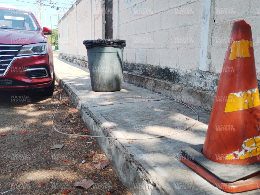 MÉRIDA, Yuc., 12 de junio 2023.- Alumnos de la escuela primaria de la Serapio Rendón corren peligro debido a que un cable de alta tensión se desprendió y permanece tirado en la entrada del plantel, en riesgo no solo los alumnos, si no decenas de peatones y automovilistas que circulan por la zona.