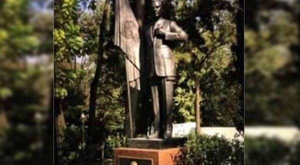 La figura de bronce mide 2.20 metros y pesa cerca de 200 kilos y representa al presidente Peña Nieto portando una bandera de México.
