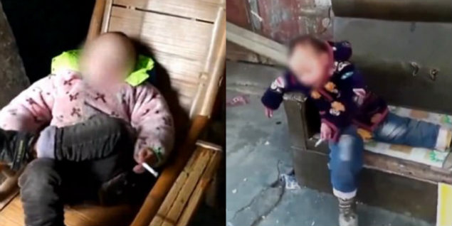 En China, un niño de cuatro año es grabado, supuestamente, por sus abuelos fumando cigarrillo en distintas ocasiones; de acuerdo con sus vecinos, el pequeño lleva entre uno y dos años fumando.