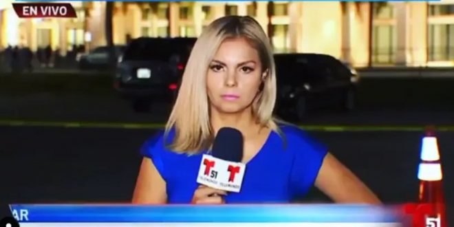 La periodista de Telemundo, Jessenia Hatti-Barrett, se salvó por centímetros de ser atropellada cuando realizaba un enlace en vivo para un noticiero. Afortunadamente todo quedó en un susto y resultó ilesa.