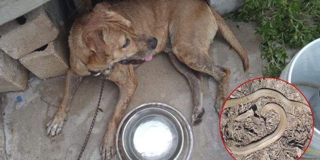 En su instinto por defender a su ama, “Ringo” atacó a la serpiente hasta matarla y a cambio recibió varias mordidas del reptil.