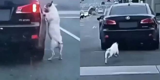 🇺🇲🐶😢 | Un perro intenta volver a subirse al coche de su dueño después de ser abandonado a un lado de la carretera en Long Beach, California.