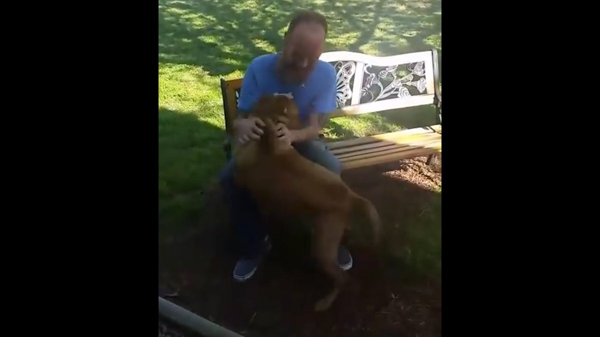 Tras segundos de insistir, el perrito se acercó sigilosamente a su amo y en el instante que lo olfateó lo pudo reconocer, y se lanzó a él moviendo la cola muy entusiasmado, incluso le dio un beso.