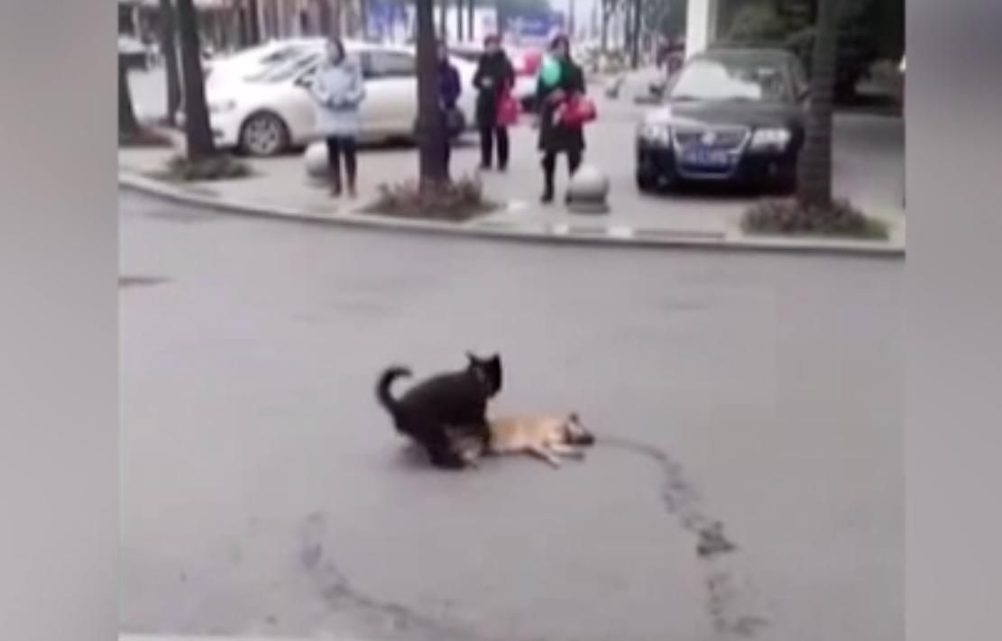 Una enternecedora escena de un perro, conmovió a decenas de personas en China, luego de que el can intentara revivir a su compañero que había sido atropellado por un automóvil.