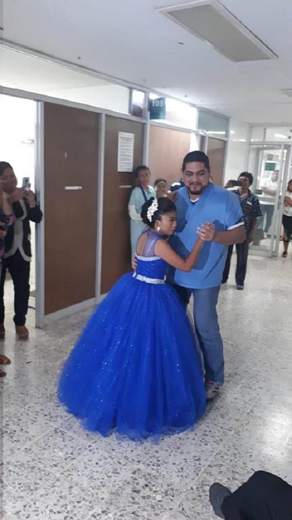 Con baile, comida e invitados el personal de dicho nosocomio le cumplió el sueño a florecita que era el de bailar su vals.