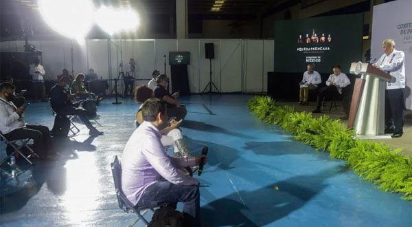 “Nos vamos despacio. Ya parará, como diría Chico Ché, mi paisano, ya parará la lluvia, ya parará, compadre”, expresó al final de la conferencia de prensa que concluyó tras una hora y 13 minutos ya que en el salón con techo de lámina y la fuerte lluvia le impedía oír las preguntas.