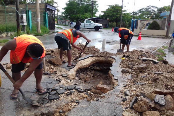 La fisura se originó por una rajadura de unos 50 centímetros de longitud en un conducto ubicado, exactamente, frente al tanque elevado del cárcamo de Santa Isabel, la cual fue arreglada para evitar el desperdicio de una importante cantidad de agua, a pesar del fuerte aguacero, con las debidas medidas sanitarias y siguiendo las indicaciones por la contingencia del Covid-19.