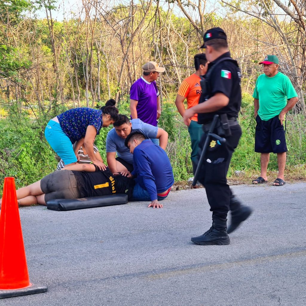 Samahil, Yuc., 18 de julio.- Después de acudir al bailongo en Umán, una joven vecina de Kuchel, agarro un mototaxi para ir a comprar cochinita, ya había avanzado 500 metros de esta comisaría, cuando le ganó el sueño y volcó en la vía estatal que conecta con la cabecera municipal, la mañana de este domingo.