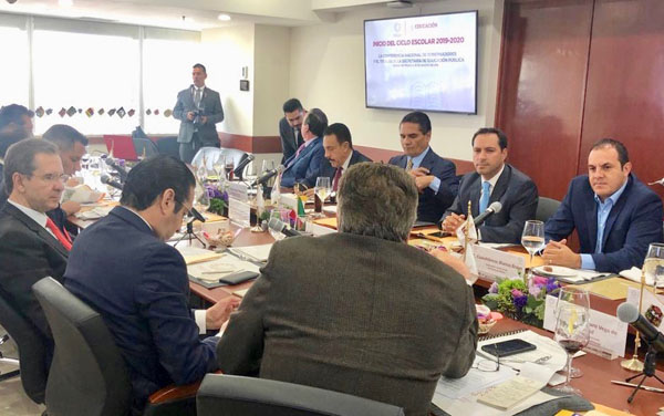 Tras encabezar el comienzo del nuevo ciclo lectivo e iniciar la entrega de paquetes escolares en Yucatán, durante un evento en la escuela Primaria Matutina “Felipe de Jesús Mis” del municipio de Halachó, el Gobernador acudió a este encuentro en el que también estuvieron presentes Gobernadores de las otras entidades federativas del país y donde se analizaron los retos y principales puntos de acción en la materia.