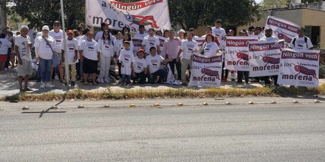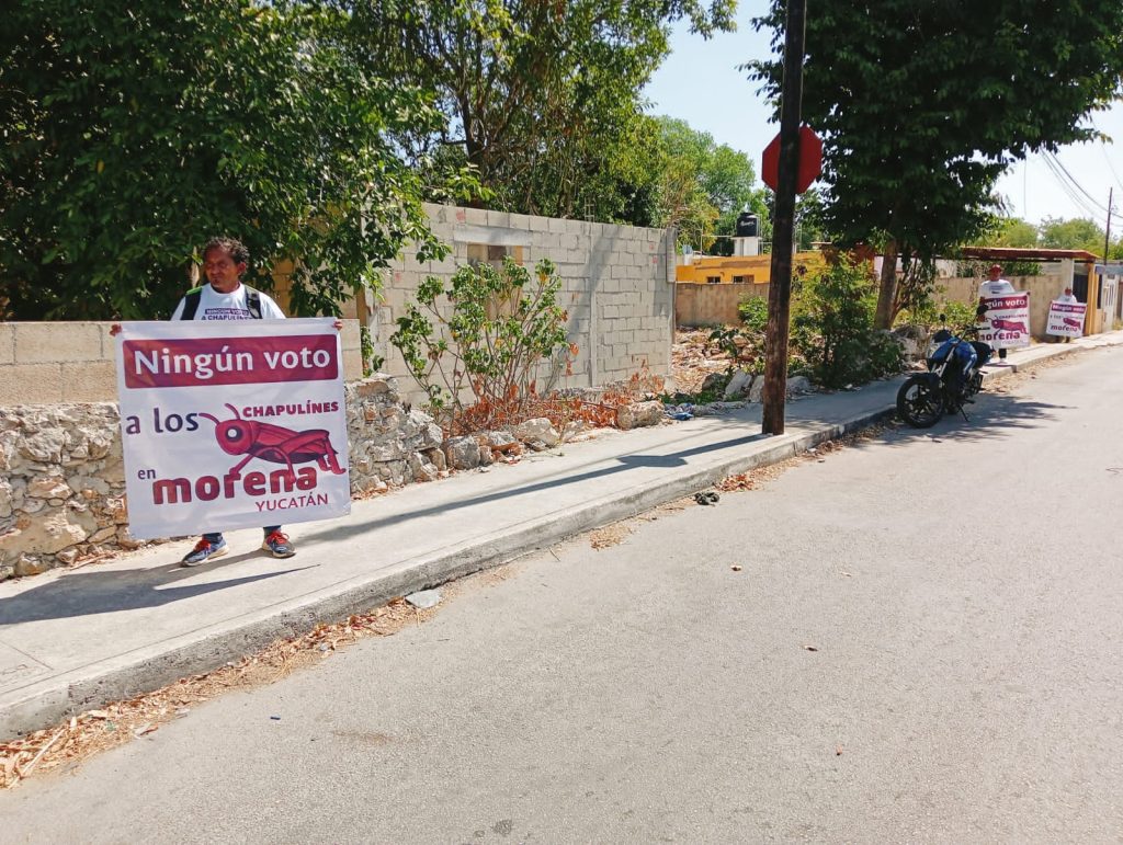 Los convocantes a esta manifestación llevan una larga lucha para denunciar imposiciones e irregularidades en los procesos internos de ese partido, por ello, hoy salieron a las calles para repartir volantes y camisetas como parte de la campaña no voten por los candidatos de la 4T en Yucatán, porque son “chapulines” procedentes de otras organizaciones.