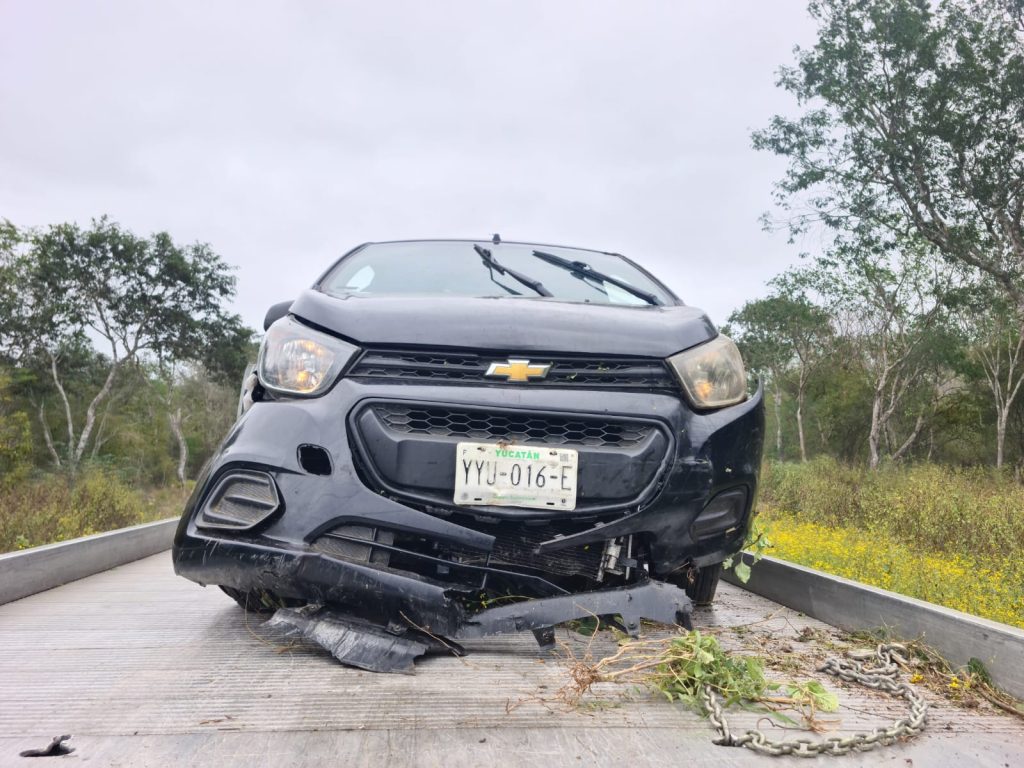 En presencia de oficiales de la Guardia Nacional División Caminos una grúa particular se encargo del arrastre para su traslado a un taller de la capital yucateca.