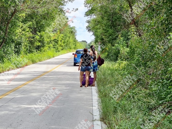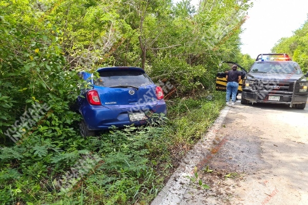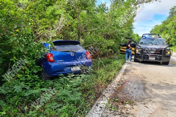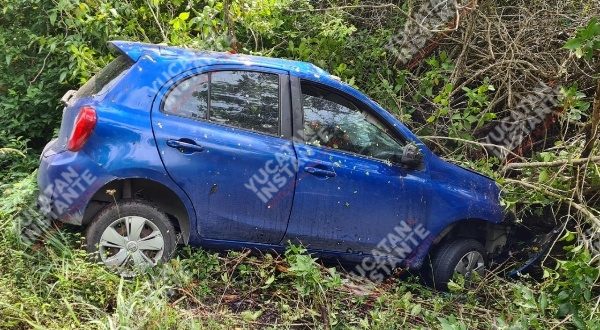 Celestún, Yuc., 23 de octubre 2020.- Enésimo accidente en la vía federal Kinchil-Celestún, ahora una mujer que iba al volante de un vehículo March, pierde el control tras “pellizcar” el borde de la carretera, causando una desastrosa salida en dicho tramo horas antes de este mediodía.