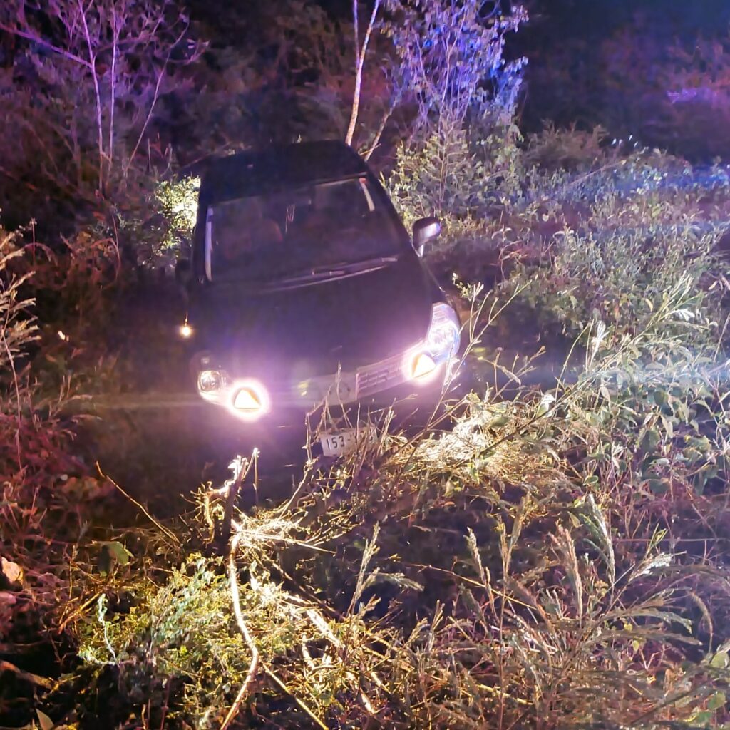 Kinchil, Yuc., 30 de mayo 2022.- En los matorrales acabó el conductor de un vehículo Nissan Tiida tras salirse la noche de este sábado del tramo Kinchil-Celestún.