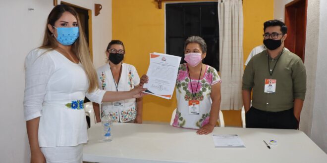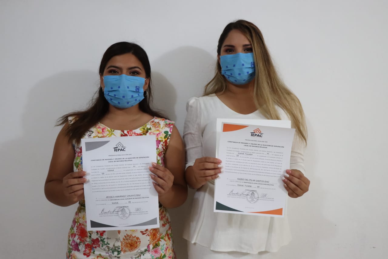 En breve ceremonia, la futura legisladora recibió la noche de este miércoles su constancia de mayoría de manos de las autoridades electorales del Consejo Distrital con cabecera en Izamal, junto con su suplente Jéssica Amairani Chuayo Raz.
