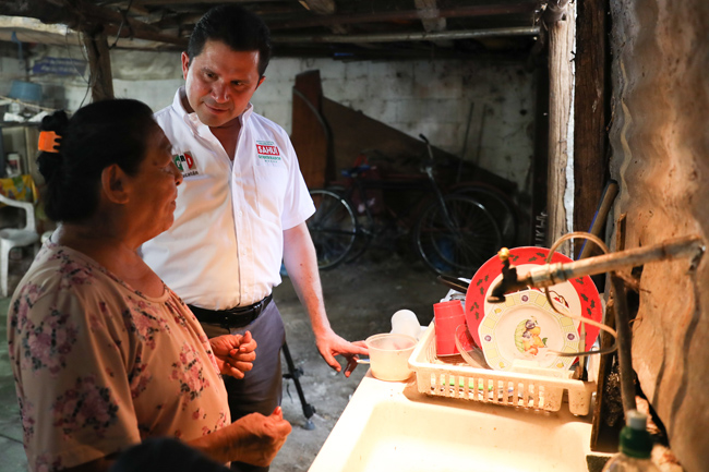 Mérida, Yucatán,.- Al conocer la historia de María del Rosario Chablé Beh, el candidato del PRI, PVEM y Panal al Gobierno del Estado, Mauricio Sahuí Rivero, comprometió este día la cuarta acción de vivienda de las 200 mil que impulsará durante su gestión.
