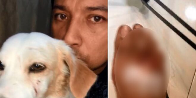 MÉRIDA, Yuc., 18 de julio 2021.- Este miércoles en su página de Facebook, el comediante y actor yucateco Pierre David Sansores Pech, denunció que una persona con un perro pitbull blanco sin correa mordió a su perro “Príncipe” y también lo mordió a él, dejándolos con lesiones.