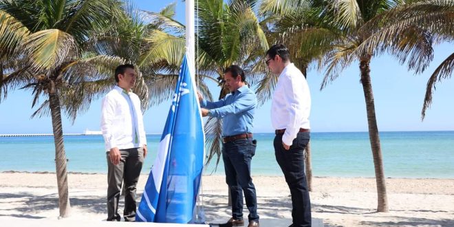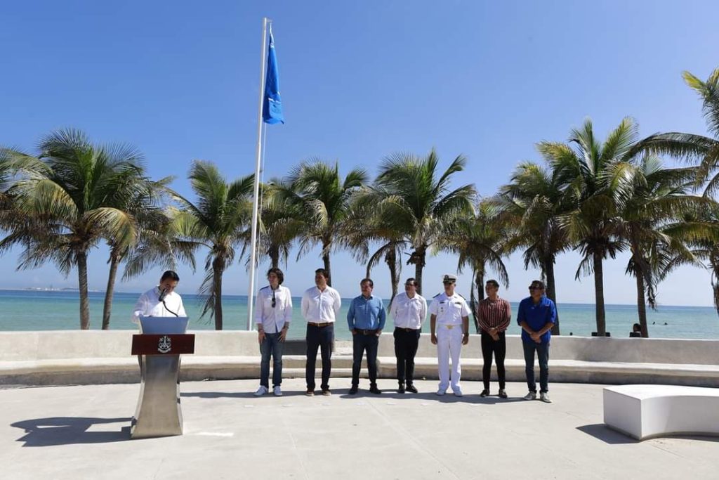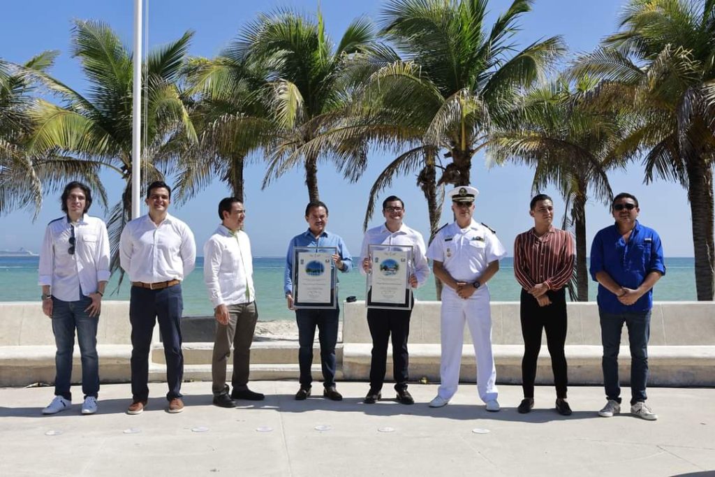 Progreso, Yucatán, a 8 de agosto de 2024. Teniendo como fondo la bella playa del Malecón tradicional, esta mañana, el alcalde Roger Gómez Ortegón, recibió a favor de Progreso la quinta certificación “Blue Flag”, correspondiente a la temporada 2024-2025; reconocimiento que otorga la Fundación para la Educación Ambiental (FEE, por sus siglas en inglés) y que reafirma el prestigio del puerto como un importante destino turístico de Yucatán.