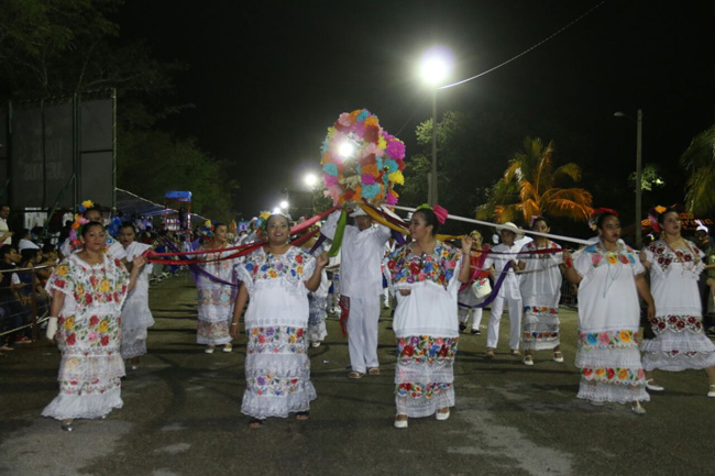 Doce comparsas participantes, entre ellas “Guerreros Mayas”, “Raíces Mexicanas”, “New Generation” y “Benemérito de las Américas”, entre otras, se esforzaron en ofrecer el mejor espectáculo honrando las tradiciones yucatecas con representaciones de dioses mayas, pixanes y bailes regionales.