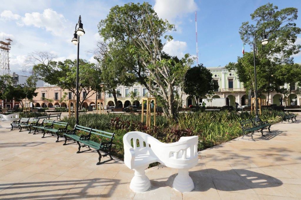 En la Plaza Grande se retiraron árboles que tenían plaga o estaban enfermos para, en su lugar y en un acto sin precedentes, sembrar más de 100 nuevos árboles de variedades endémicas como la ceiba, balché, ramón, álamo, y la jícara para tener el doble de áreas con sombra, mismos que para los mayas tienen gran simbolismo religioso, cosmológico y son esenciales para la vida.