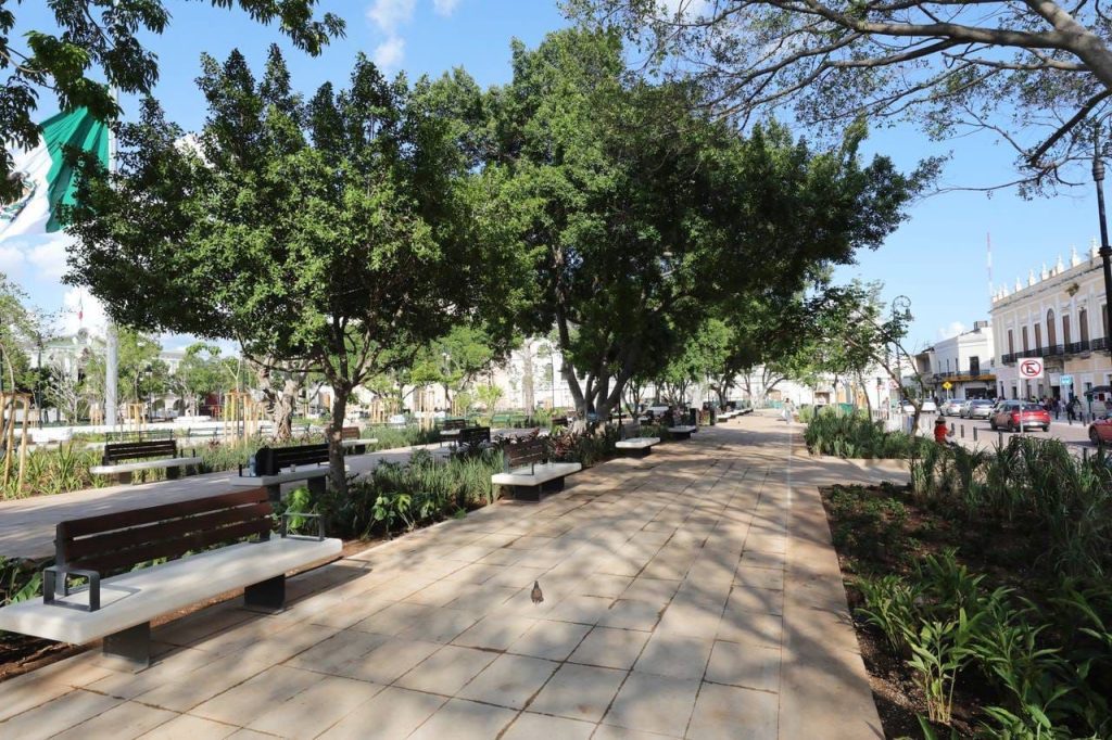 En la Plaza Grande se retiraron árboles que tenían plaga o estaban enfermos para, en su lugar y en un acto sin precedentes, sembrar más de 100 nuevos árboles de variedades endémicas como la ceiba, balché, ramón, álamo, y la jícara para tener el doble de áreas con sombra, mismos que para los mayas tienen gran simbolismo religioso, cosmológico y son esenciales para la vida.