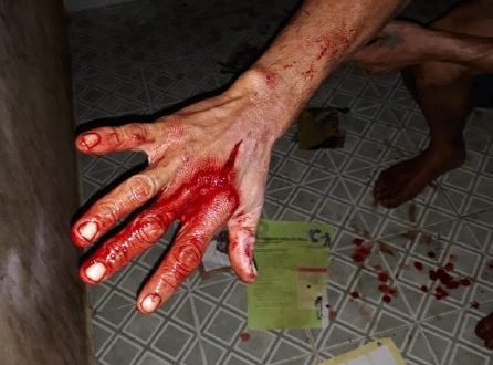 Al llegar los uniformados al predio fueron informados por Leticia Cemé Dzib que momentos antes su hermano Alejandro, de 27 años de edad, se había cortado la mano derecha luego de romper un vaso para intentar agredir a su otro hermano.