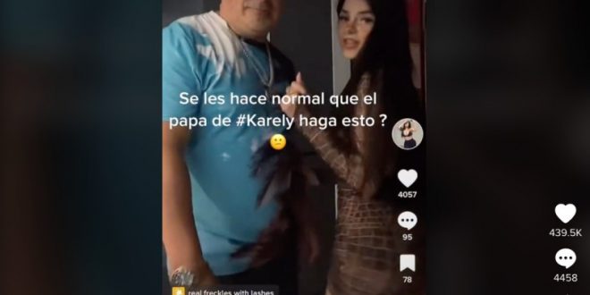 Bajo el título: ¿Se les hace normal que el papá de Karely haga esto?, el video, de 5 segundos, comienza con el padre de la joven frente a ella bailando, pero en el tiempo que corre se le observa la intención de tomarla por la cadera, acto que ella sutilmente impide.