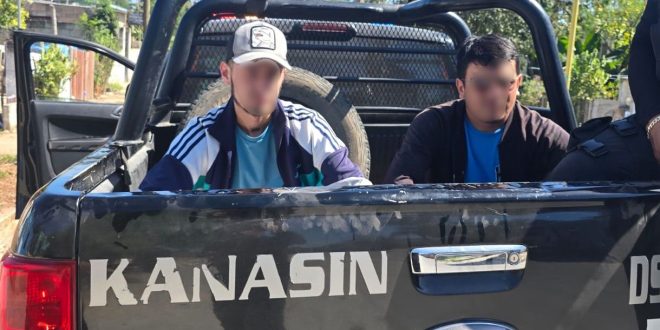 Kanasín, Yuc., 31 enero 2025.- Elementos de la Policía Municipal de Kanasín detuvieron esta tarde a dos colombianos por disturbio y por ser presuntos integrantes de una red de préstamos denominada “Gota a Gota”.
