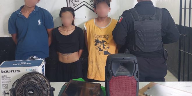 Se les detiene y se identifican como Lilí Marisol M.G., Pablo Antonio C.F. y Jorge Alberto D.D, todos ellos de 18 años de edad. Uno de los detenidos señaló también que tenía objetos de otros robos guardados en casa de su madre, por lo que se le trasladó a ese sitio para su recuperación y entrega a los afectados.