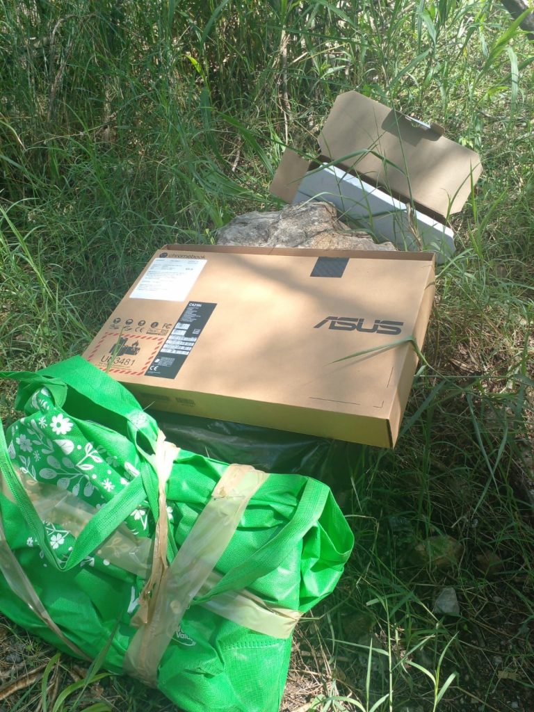 Con las características proporcionadas, se realizó un recorrido por calles cercanas y se les logró ubicar, pues llevaban consigo una bolsa verde, una bolsa negra y una caja, donde guardaban el producto de lo robado esta mañana.