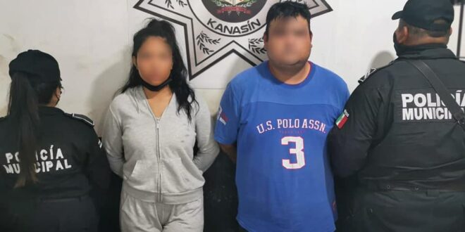 KANASÍN, Yuc., 26 de mayo 2022.- Elementos de la Policía Municipal de Kanasín detuvieron la noche de ayer miércoles a un par de sujetos, una mujer y un hombre, de origen mexicano, que se hacían pasar por colombianos y que presuntamente pertenecen a la red de préstamos “gota a gota”. Ambas personas fueron detenidas tras un reporte de amenaza de muerte en contra de algunas personas en el municipio de Kanasín por estar atrasados en sus adeudos.