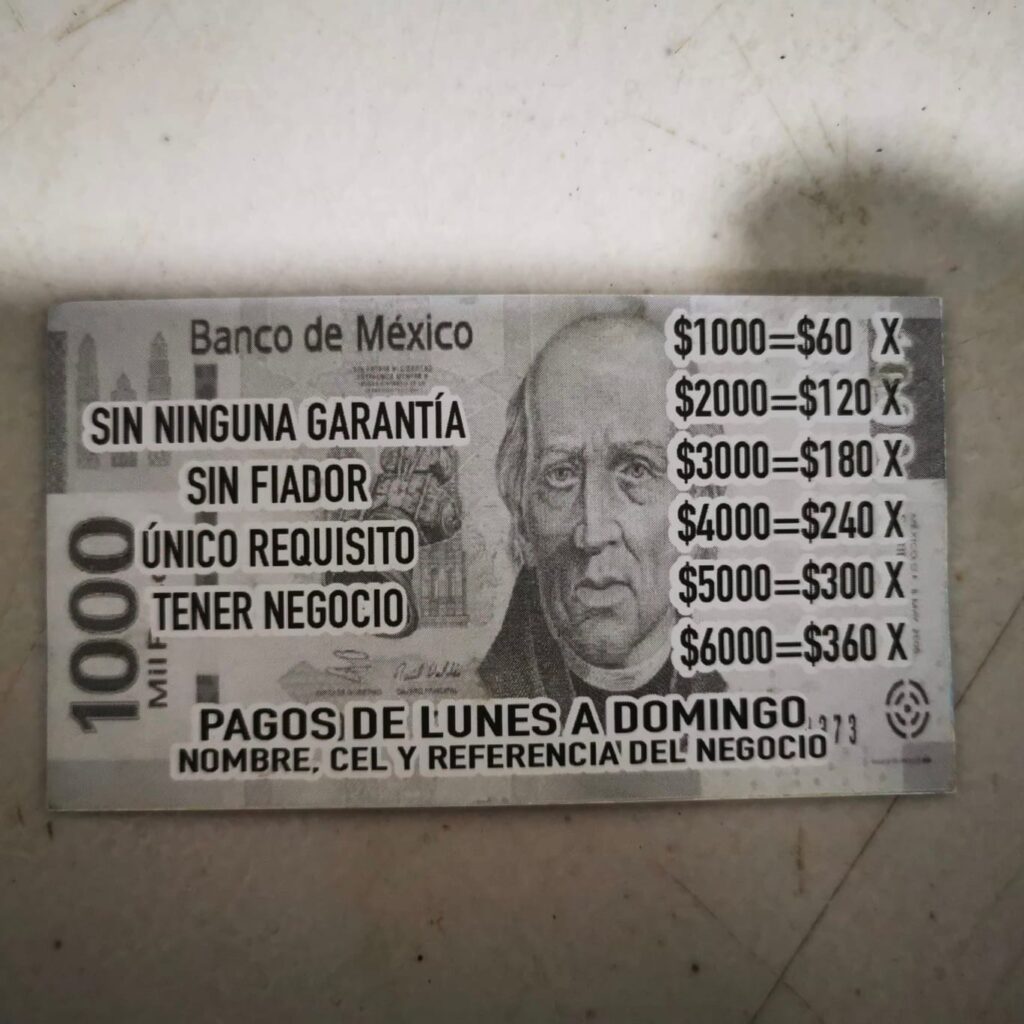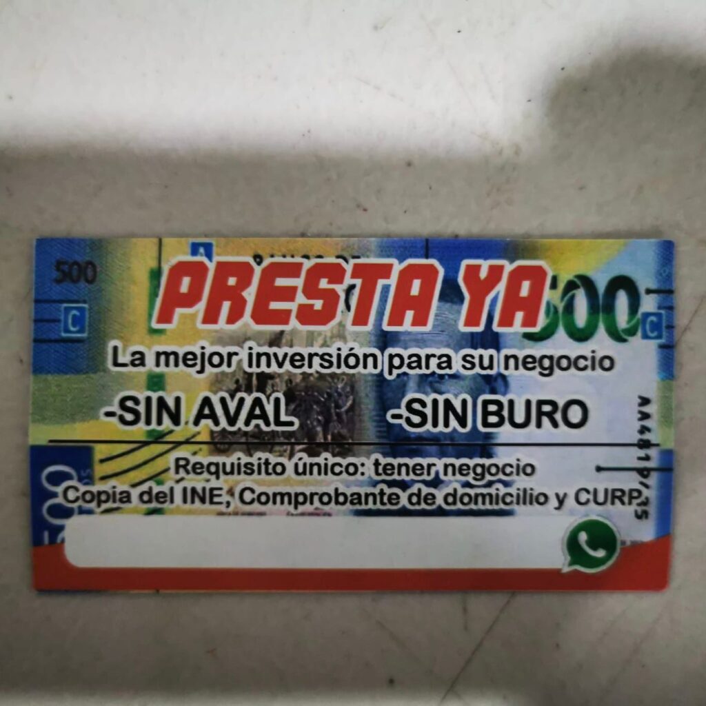 Elementos de la corporación identifican esta unidad que circulaba sobre la carretera Mérida-Cancún, por lo que se procede a su detención y al realizarles una revisión preventiva se les encuentran tarjetas donde promocionaban sus préstamos, así como cuadernillos donde anotaban los pagos que realizaban distintos deudores.