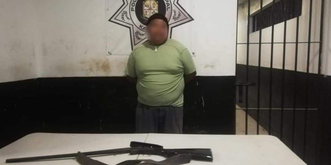 Kanasín, Yuc., 08 de mayo 2023. – Elementos de la Policía Municipal de Kanasín detuvieron a José Alberto Y.H., de 32 años de edad, quien la noche de ayer domingo, en estado de ebriedad, disparó contra un predio en el Fraccionamiento Alameda con una escopeta calibre 20 mm.