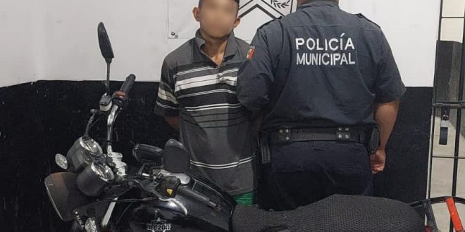 Kanasín, Yucatán a 8 de enero de 2023.- Elementos de la Policía Municipal de Kanasín detuvieron la tarde de ayer sábado a José Guadalupe B.B., de 25 años de edad, por el presunto robo de una motocicleta.
