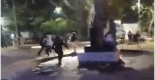 Al lugar llegaron elementos de la Policía Municipal con equipo antimotin y para dispersar a los manifestantes realizaron disparos al aire. Esto provocó que los manifestantes salieran corriendo.