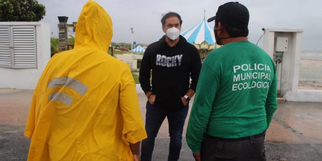Elementos de la policía ecológica de Progreso brindan apoyo durante las contingencias por el paso de la tormenta tropical Gamma y del huracán Delta