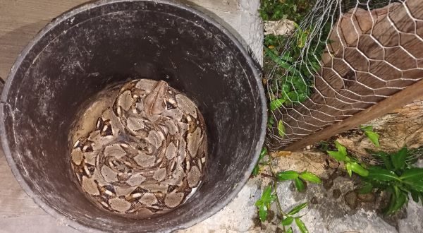De igual manera, se recibió el reporte ayer en la noche de Azael S.C., con domicilio en la calle 38A con 59 y 61 de Reparto Granjas, quien comentó que salía de su casa para comprar la cena y al retornar vió una serpiente en su mata de ciruela, por lo que con cuidado la captura y la pone dentro de una cubeta.