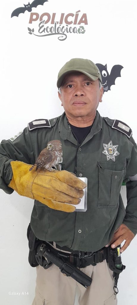 KANASÍN, Yuc., 17 de octubre 2023.- Elementos de la Policía Ecológica de Kanasín rescataron al mediodía de hoy un pequeño búho, de aproximadamente tres meses de edad, el cual fue rescatado por un ciudadano y posteriormente entregado para su protección y posterior liberación.