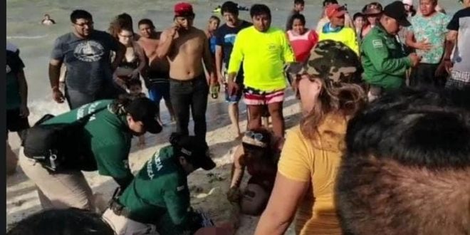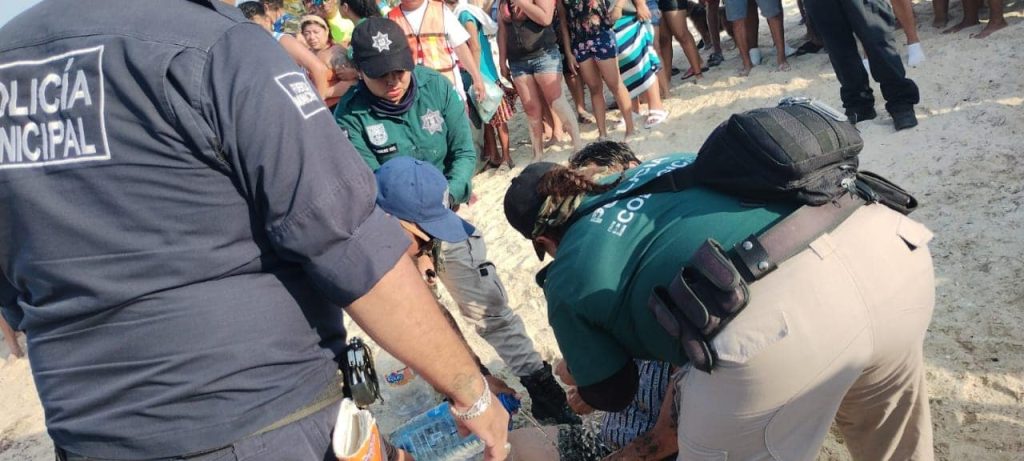 La mujer fue sacada del agua por visitantes y regresada a la orilla, donde elementos de la Policía Ecológica le aplicaron primeros auxilios y con siguieron que esta reaccionara.