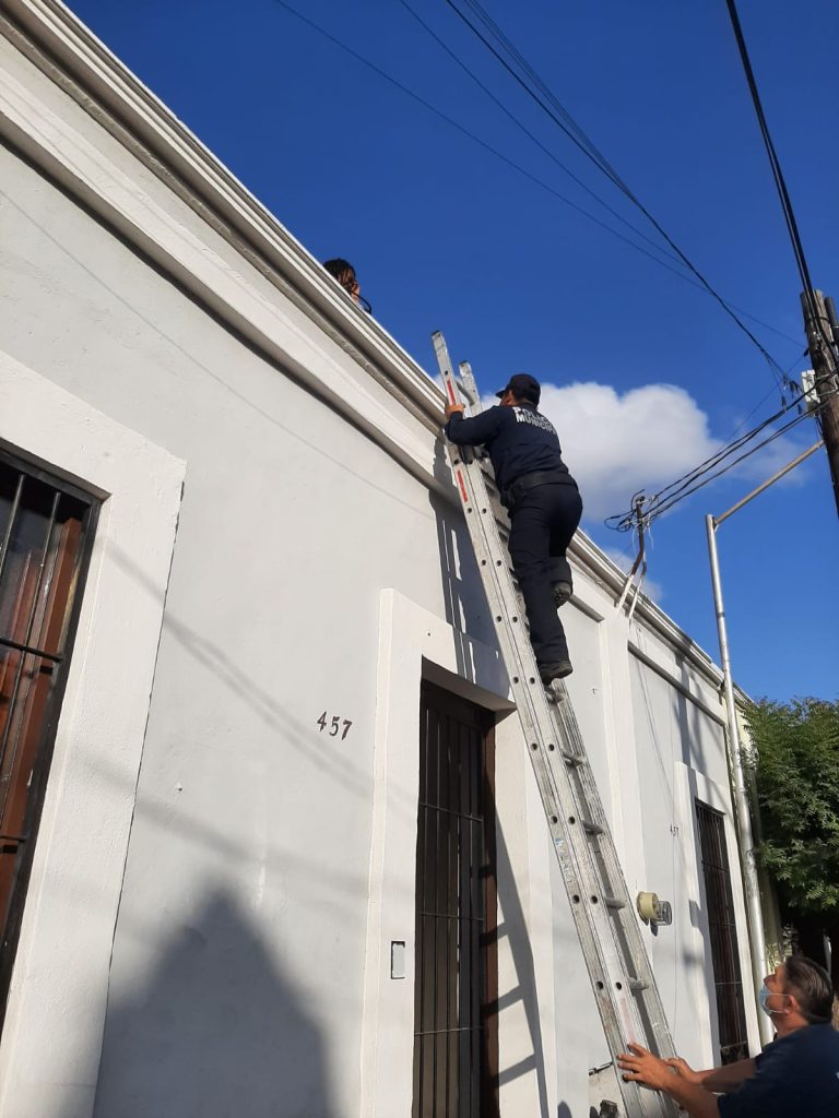Al lugar acudieron agentes policiales y personal del departamento de Ingeniería Víal quienes con una escalera lograron trepar al techo del predio, lugar al que pudo subir la turista, para posteriormente descender por medio de la escalera.