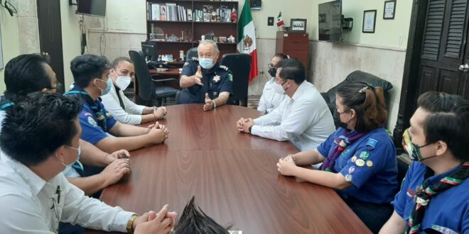 En su visita fue recibido por el director de la Policía Municipal, Mario Arturo Romero Escalante, quien agradeció la presencia del Grupo 29 de los Scout, denominado “Chaac”, debido a que de esta manera se fortalecen los lazos con la sociedad.