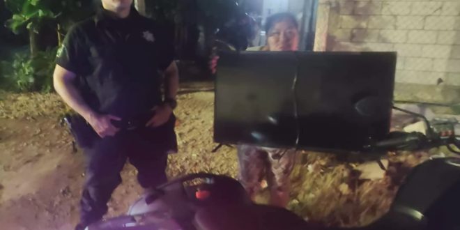 Celestún, Yuc. a 29 de noviembre.- En sigiloso operativo de la Policía Municipal recuperaron una televisión de 32 pulgadas, propiedad de la señora Angela Lizama, el cual le habían sustraído por un ratero de su puesto ubicado por la avenida principal de este puerto.