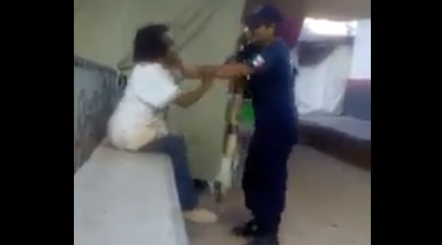 Ayer se difundió en las redes sociales un video donde se observa a un policía obligando a un indigente a bailar con él.