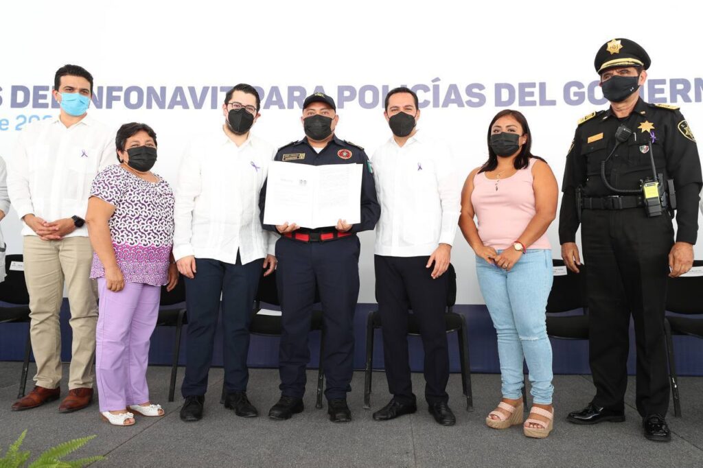 Mérida, Yucatán, 25 de noviembre de 2021.- Resultado de las constantes gestiones del Gobernador Mauricio Vila Dosal ante la Federación, elementos de la Secretaría de Seguridad Pública (SSP) ya pueden obtener créditos para adquirir una vivienda propia a través del Instituto del Fondo Nacional de la Vivienda para los Trabajadores (Infonavit), lo que convierte a Yucatán en el primer estado del país en contar con este programa de financiamiento para los agentes de seguridad.