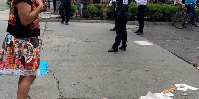 El incidente se registró alrededor de las 13:00 horas en la esquina de 5 de Mayo y el circuito de la Plaza de la Constitución del Zócalo capitalino, donde el comerciante pese a las restricciones se adentró al primer cuadro para ofrecer la comida.